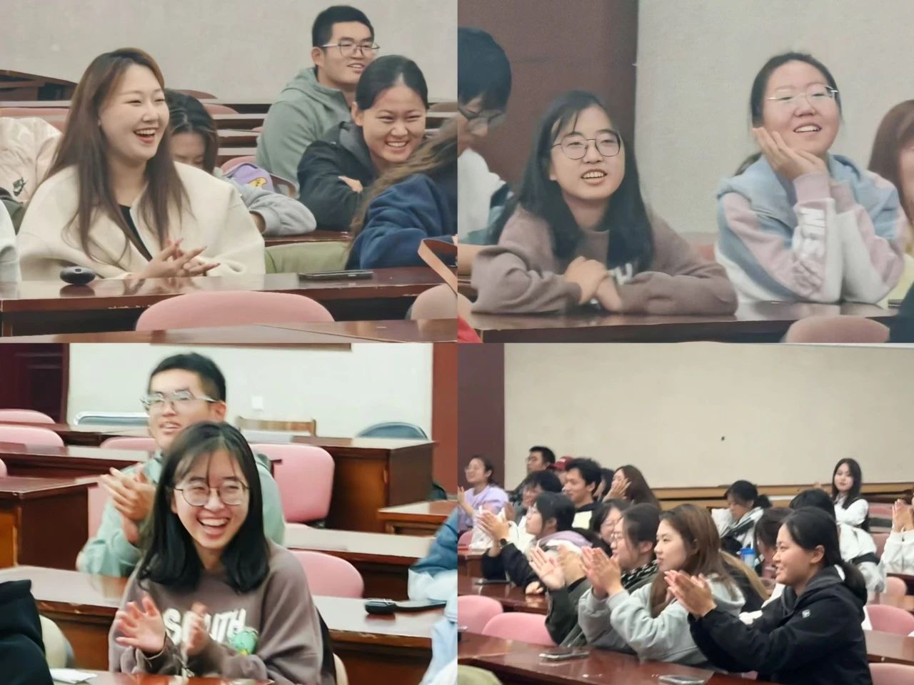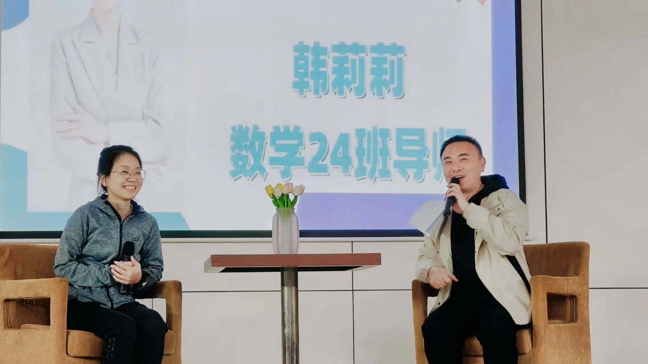数学24班的“学霸”班导师韩莉莉老师拥有激励人心的力量。韩老师从自身求学经历出发,告诉大家要为心中的目标去努力,去追求,在当下做最好的自己。谈到攻读博士的力量之源时,韩老师说那时“不断前进的自己”是给宝宝的最好“胎教”,不言放弃总会为自己迎来曙光。相信此刻不断前进的“学霸”班导师也是学生们最好的榜样!