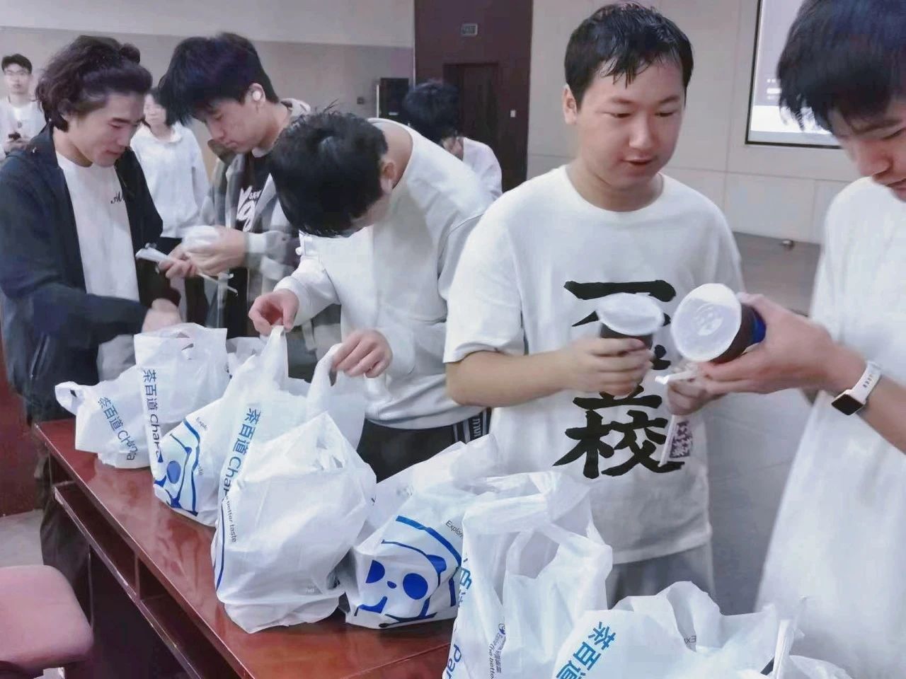 为观影同学准备了暖暖的奶茶,同学们一起用满满的热情向祖国表达爱意。