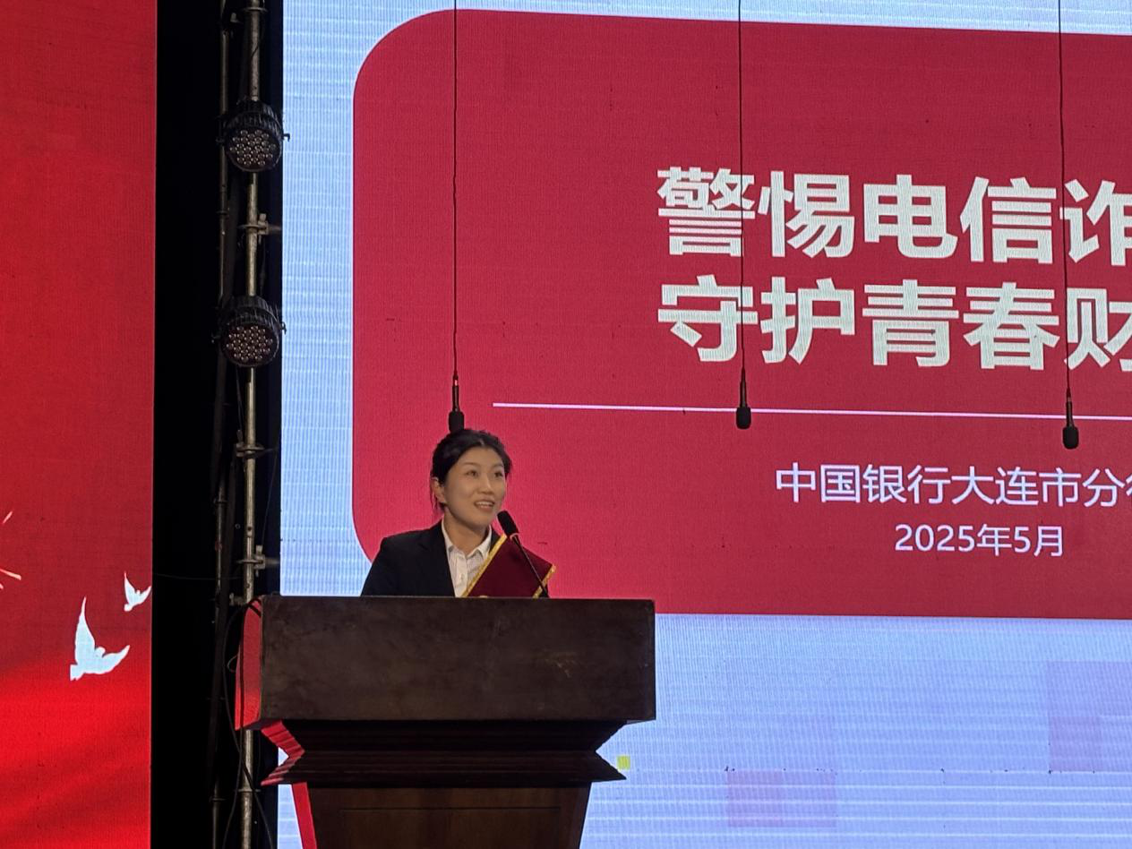 于文体中心会堂开展网络诈骗专题讲座。中国银行大连市分行营业部主任高美亮出席,反诈宣传员刘昭希主讲,为师生带来一场生动实用的反诈知识普及讲座。